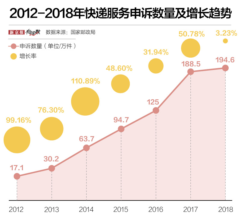 在各大品牌野蛮生长、占有市场期间,快递服务质量问题也日益增多,各种侵害消费者权益的事件呈现出不断增加的态势。