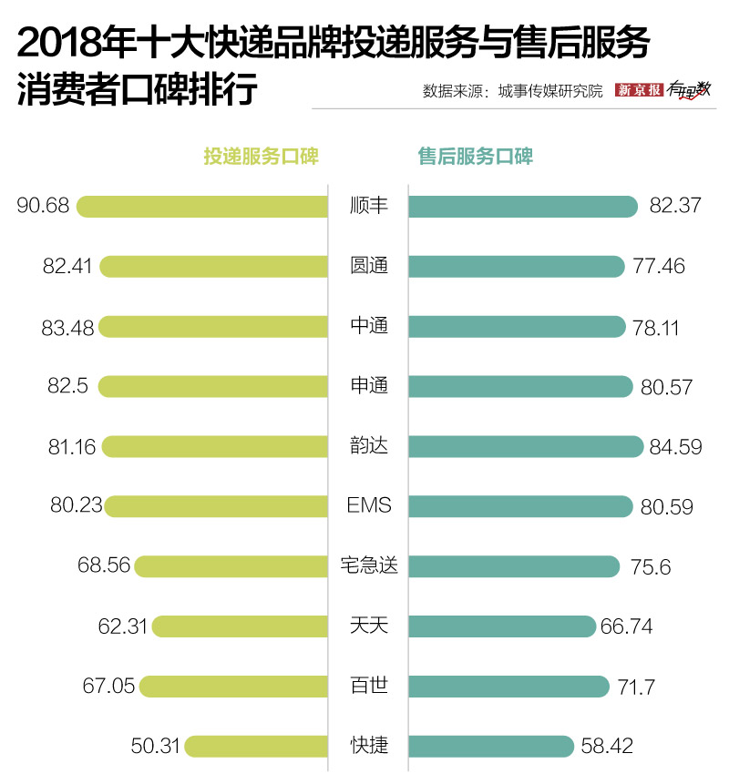 完整的快递服务,售后同样是不可或缺的一个关键部分。投递、售后是构成快递服务两个最关键因素,那么各大快递品牌在这两个方面表现如何?