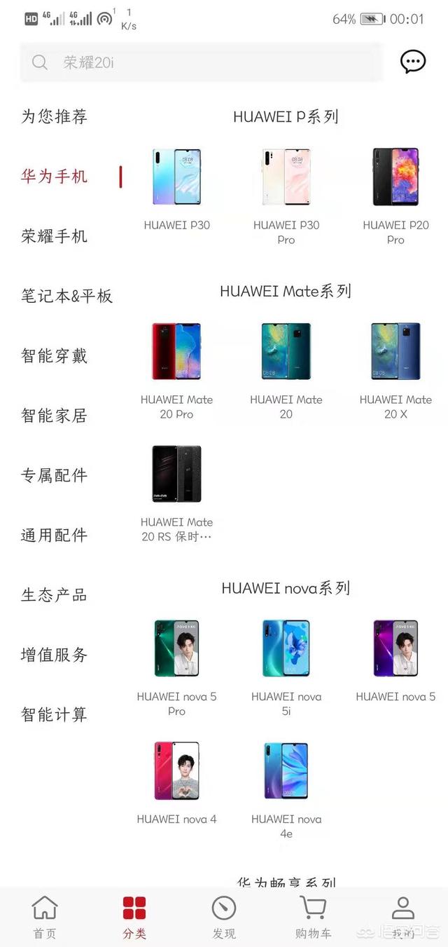 华为手机共有几个系列?不多说直接上图,为了找这个图,特意去下载了华为商城。