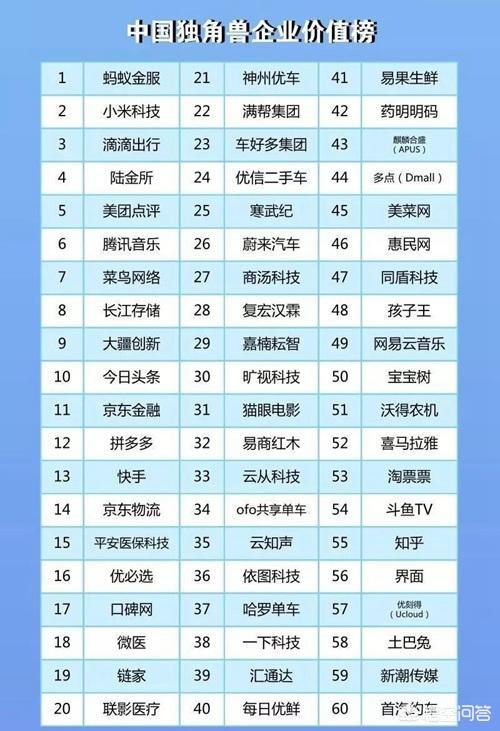 当然以上仅仅只是部分中国独角兽公司,国内独角兽公司还有很多,以上的就是国内目前国家定义为真正独角兽的公司名单。以上名单供大家参考。