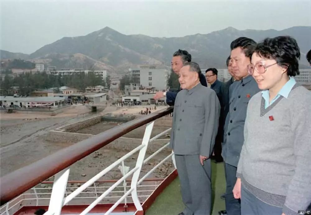 1984 年1 月26 日,邓小平(左前)在深圳蛇口“海上世界”旅游中心眺望蛇口工业区