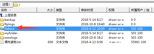 接下来我们要做的是把该文件上传到网站服务器的htdocs文件夹。