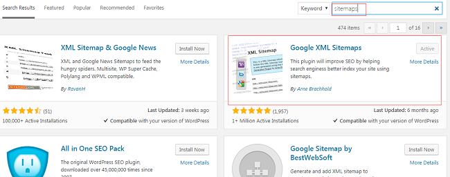 在wp后台添加插件搜索sitemaps,就会有很多插件供我们选择,这里推荐使用Google XML Sitemaps。