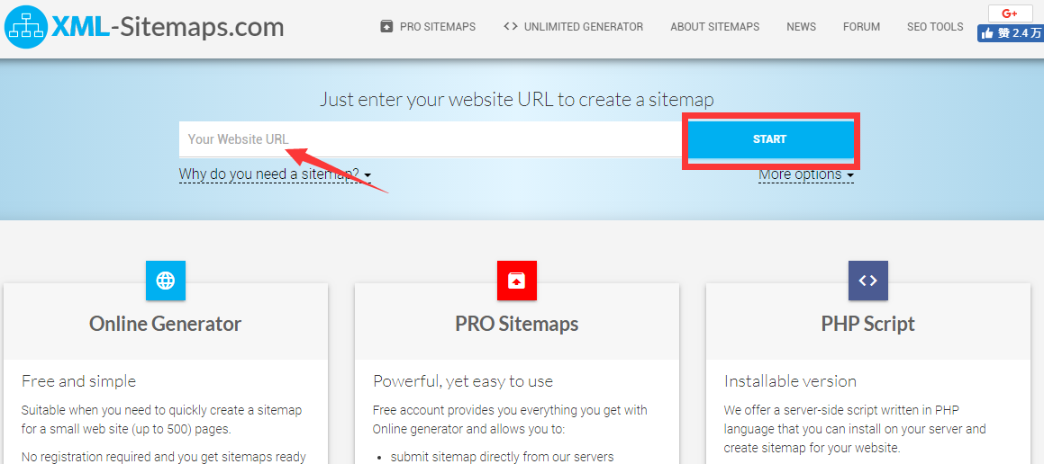 网站地图的制作方法有很多种,这里推荐一种站点地图制作工具xml-sitemaps: