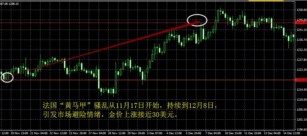 什么是基本面分析呢?根据市场上基本面的变化判断金价走势,称为基本面分析。哪些基本面影响金价?国际政治经济关系、美元走势和黄金供需关系都影响金价。比如2018年年末法国国内“黄马甲”事件,激发市场避险情绪,金价日内上涨10美元。整个2018年美元保持强势,金价大幅度下跌。一般在2-3月份,黄金消费大国对黄金需求增加,供不应求,金价也会上涨。