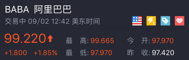 或许受此消息影响,黑色星期五的阿里巴巴股价上扬2个点,每股逼近100美元。