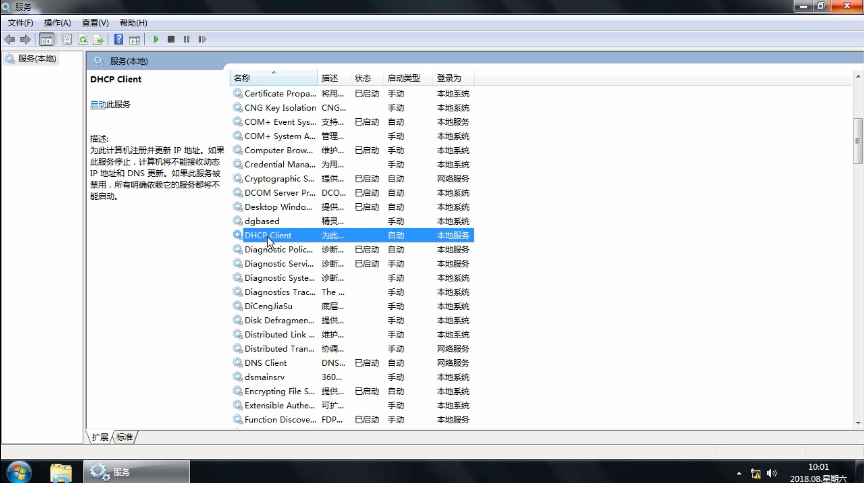 2.找到并双击打开DHCP Client 点击启动按钮即可