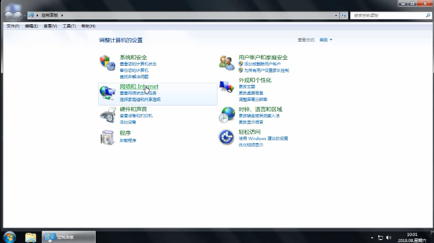 3.在开始菜单中打开控制面板 选择网络和Internet