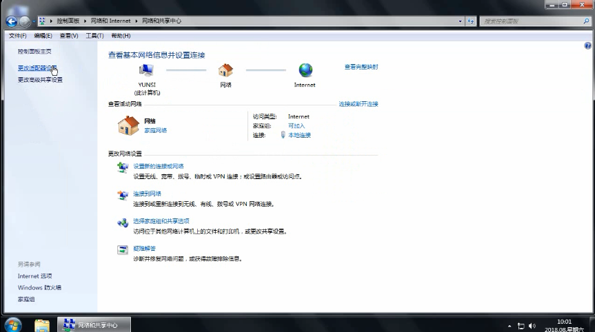 4.点击网络和共享中心 点击左侧的更改适配器设置