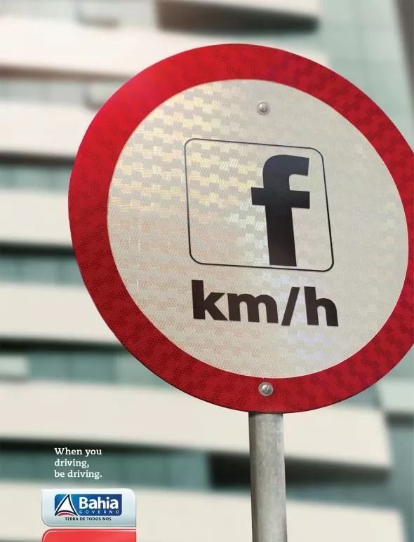 这项宣传广告,以遏制使用智能手机导致相关的事故为目的。每个广告使用社交媒体网络符号代替重要的驾驶标志。