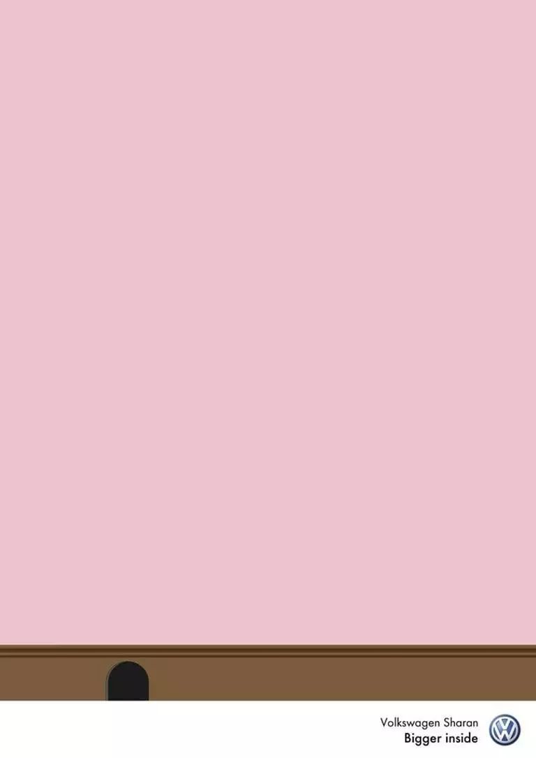 这个项目用醒目的颜色填充了大量的“白色”空间。依靠超过广告尺寸75%的颜色面,这款大众Sharan广告引起了人们的注意。