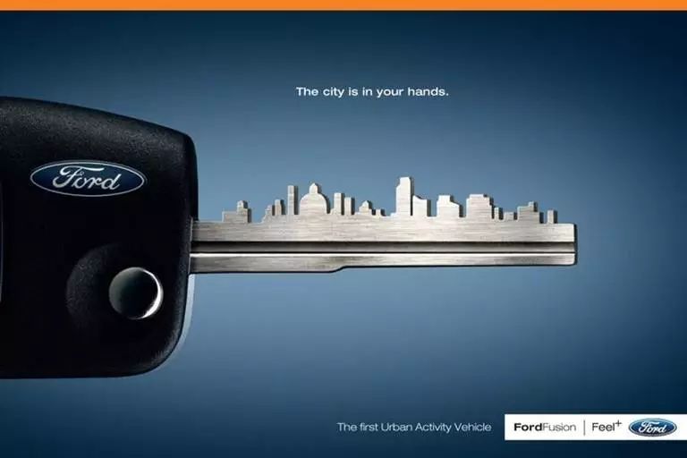 想想你的目标受众——他们住在哪里?他们做什么?福特Fusion利用钥匙做文章,把汽车定位为适合城市居民的探险家。