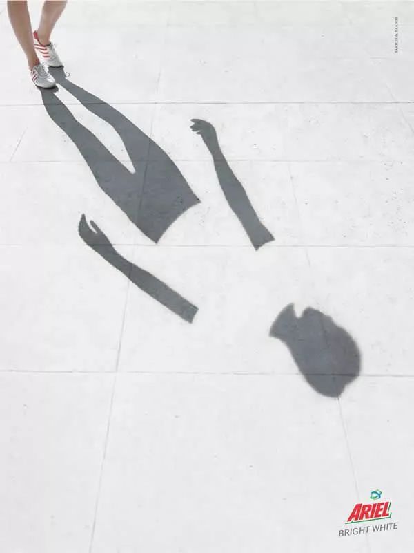 夸张可以产生一些有趣的概念。在这个广告中,衬衫白到影子都显示不出来。