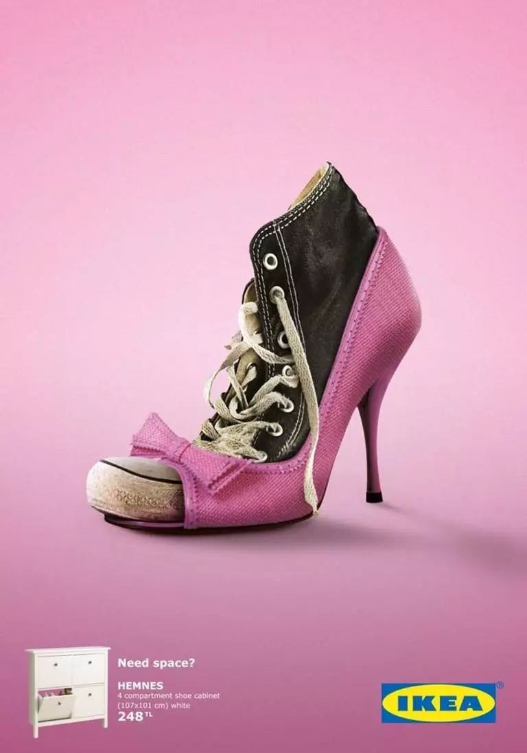 宜家这个明亮的平面广告,突出了橱柜空间的缺乏,以推广他们为节省空间的产品解决方案。