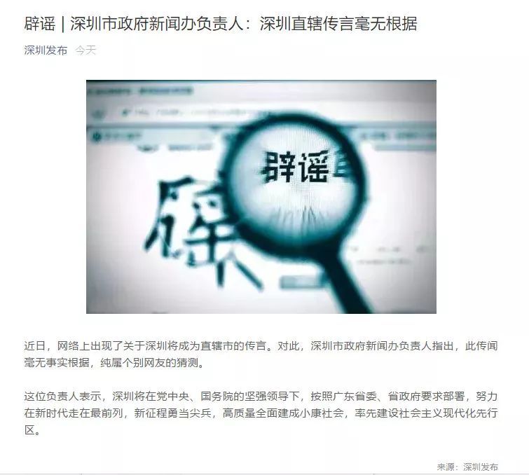 其实“深圳直辖”的传言