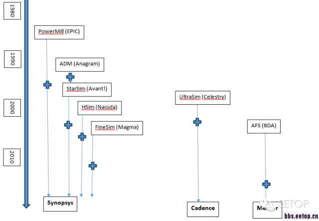下面的图给出了主要快速仿真工具的发展过程,“+”代表并购。