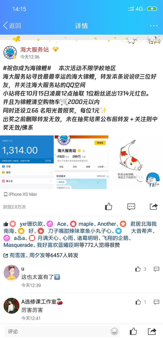 今天上午,打开QQ空间一看,被同学刷屏了,全是转发抽奖,这些号都是各高校的服务站、表白墙之类的认证账号。