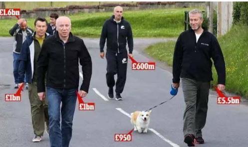 虽说身家缩水严重,但阿布拉莫维奇在俄罗斯的影响力还在,图为阿布拉莫维奇外出遛狗时的画面,陪他遛狗的四位富豪总身家达到了42亿英镑(约合人民币373亿),一只柯基的价值不过950英镑(约合人民币8436元),因为是阿布拉莫维奇的宠物,让一众大人物小心护着它。