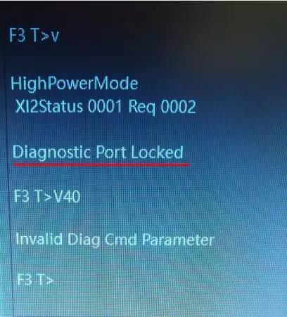 4、经过多次短接终于能够进入T级,尝试输入指令查看硬盘V40表(G表),却发现提示了“Diagnostic Port Locked”的错误,这是为什么呢?