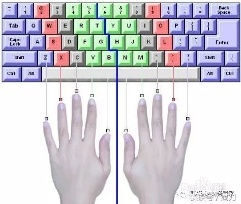 按照图片标记的手指分布图,大家试着在键盘上找一下位置。下面有一段口诀,还请大家熟读并牢记在心里。〈左小无中食,ASDF来。右食无中小,JKL到。拇指击空格,一般在右手。一指对一键,直落又直起。眼不看键盘,用心去体会。〉掌握这个口诀,然后试着练习打字。经量做到眼不看键盘的练习。当你学会如何正确的把手指放在键盘的时候,下一步你要做的就是要如何熟练的牢记26个英文以后在键盘上的位置。只有知道了正确的英文字母位置,你才能更好的运用盲打。