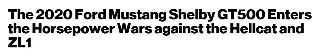 不过目前福特并没有公布最终的马力到底是700多少匹,只是说会有700+hp,或许从眼前到最终上市的这段时间里,仍然还有一些时间给新GT500确定一个稳妥的马力数据。另一方面,挑战者地狱猫在2019改款时将马力上调到717hp(英制马力),比起以往多了10hp;科迈罗ZL1也有650匹,全新的GT500加入马力大战是必然的结果,北美媒体自然也将这一点推到了头条,预计新GT500最终的马力会超过地狱猫,哪怕只是720匹!