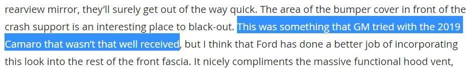 这才发布不到24小时,这张全新的前脸就被北美的媒体调侃:“这有点像GM在2019款科迈罗上尝试的新造型,可惜并没收到太多正面的评价,但是可能福特做得会更出色一点。”