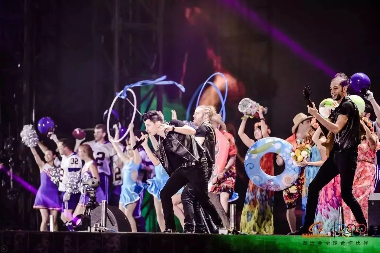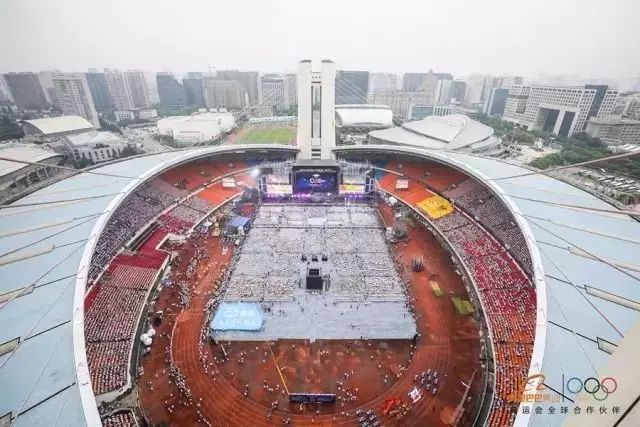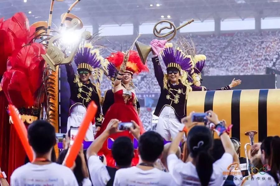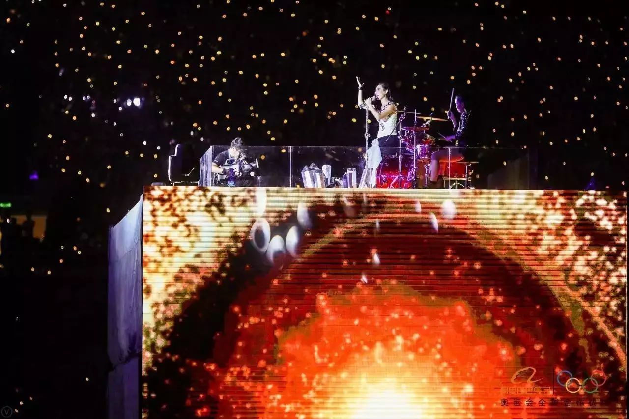 五个色彩不同的能量球,在全场近40000人的欢呼和呐喊中,越飞越快,直冲舞台,片刻,大屏上深邃的星空瞬间飞散成一片最热烈的橙色。