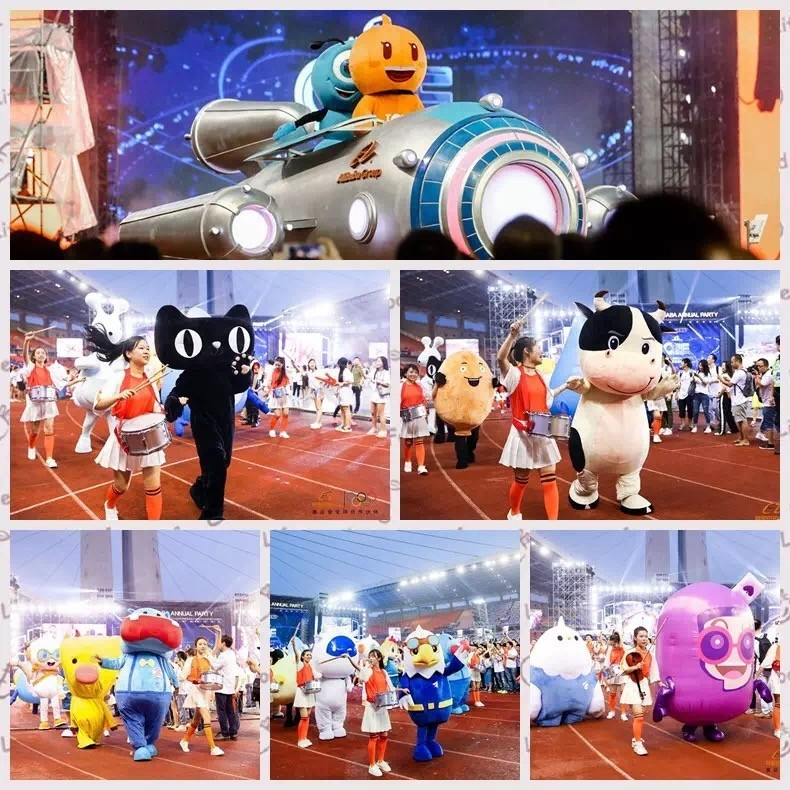 在暖场狂欢节目中,阿里吉祥物在一起开趴体,结果……飞猪火得不要不要了……尽管漏了气,也要坚持到底。