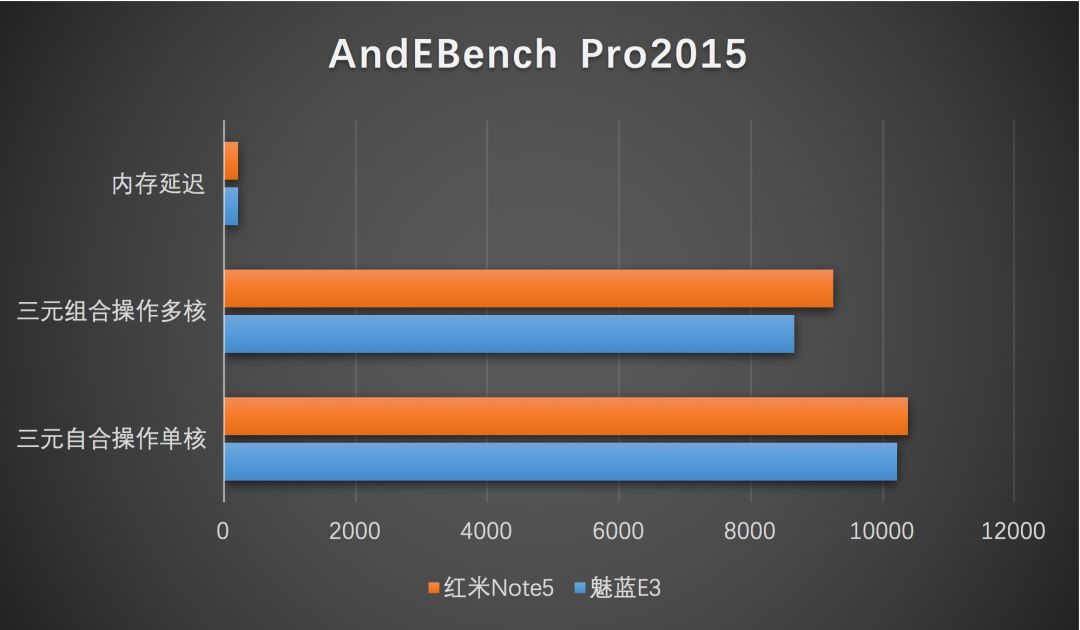 可以从上图中看到,魅蓝E3和红米Note5在运存性能方面的表现非常接近,唯一差距比较大的就是多核分数方面,红米Note5多出了近600MB/s。另外,在内存延迟方面,两款手机的表现也大致相当。虽然有一定的性能差异,但整体而言,两款手机的运存表现都在同一个级别。