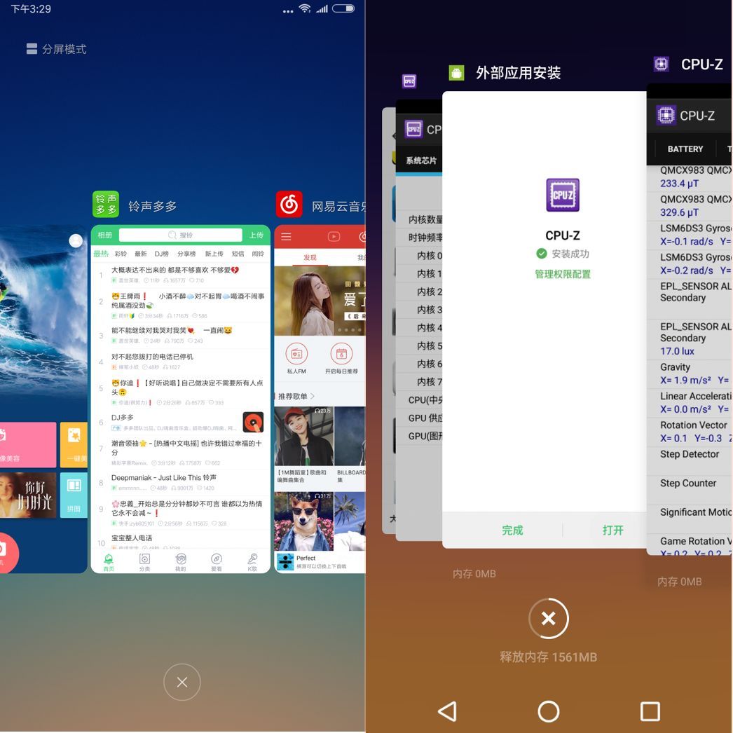 测试多任务环节时,我们给两款手机安装了“豌豆荚”综合排名前30的应用。逐个开启多个应用之后,观察两款手机在多任务场景下的表现。