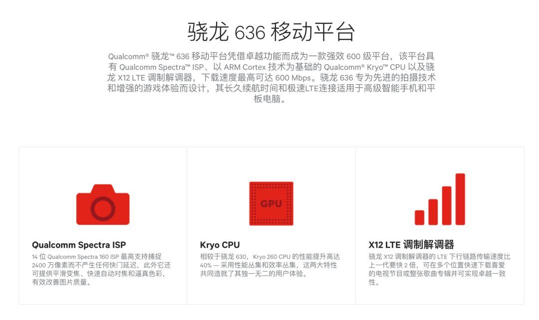 这里的“636”指的就是高通于去年10月发布,并在红米Note5上首发的中端移动平台——骁龙636。同样,和红米Note5前后脚发布的魅蓝E3也搭载了该平台。