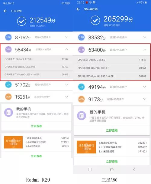 为了测试两款处理器的真实差别,分别选了两款芯片的首发产品:Redmi K20和三星Galaxy A80。