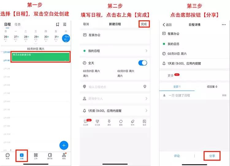 对于执行层员工而言,可利用“日志”向领导做工作汇报。钉钉中,“共享日程”和“文档”可辅助员工记录,领导查收、修改及二次反馈,让工作文件及重要笔记在云端传输定稿。