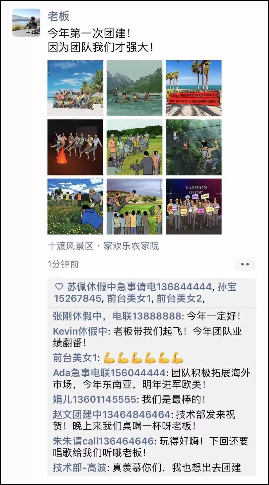 一线执行层,微信名会加上“休假中,紧急电话18011112222”。
