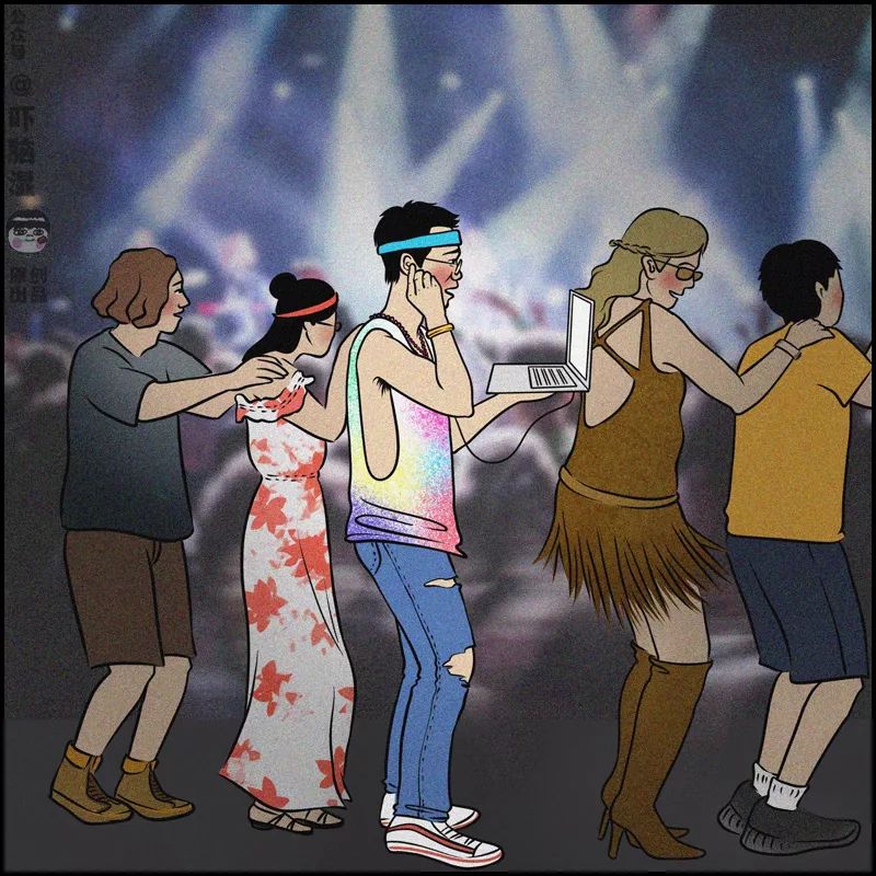 蹦迪/音乐节场子燥热全场pogo时,产品经理带着蓝牙耳机参加群语音会议;