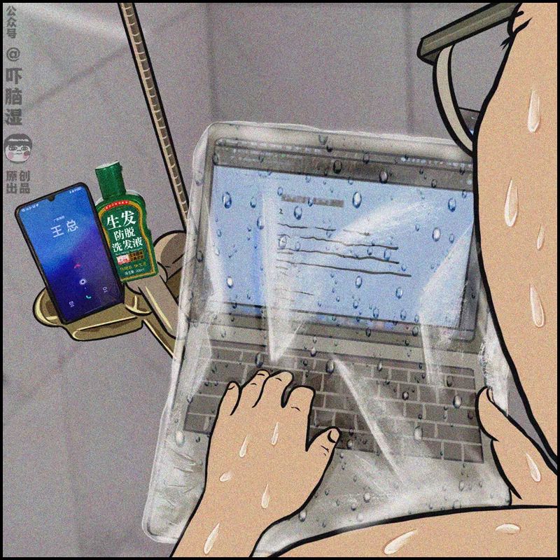 不要逼一个互联网人赶进度,英勇的互联网人,甚至敢于洗澡时直视前置摄像头,进行视频电话会议;