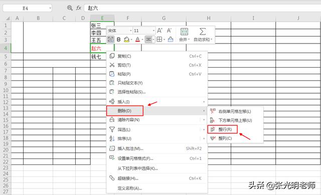 问:那怎样删除E4单元格而下方的单元格不上移呢?