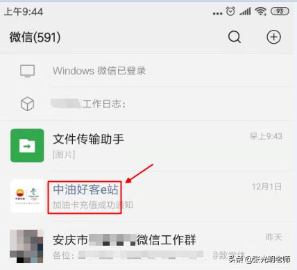 如:我想把公众号【中油好客e站】置顶到【微信】主页面