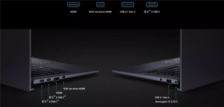 接口方面,华硕灵珑II配备具有高速数据传输、影片输出及支持快速充电等功能的雷电3,除了标准的USB Type-A和HDMI输出接口之外,还可通过专属配件连接有线网络,管控固定mac地址 ,mac地址来自笔记本内置mini Lan接口,方便设备管理。