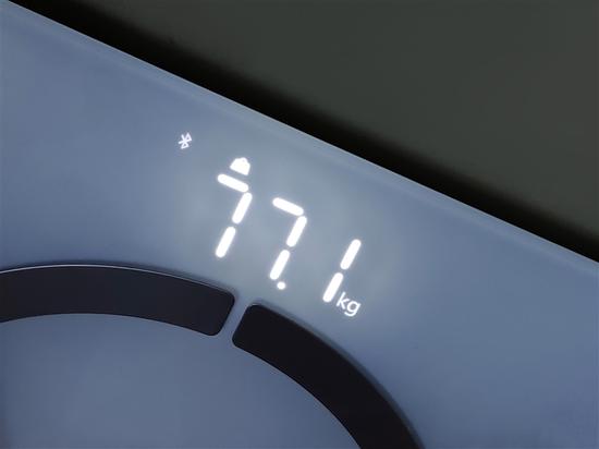 荣耀智能体脂秤2在承受2kg以上重量时就会自动激活,体重数值也立马显示了出来