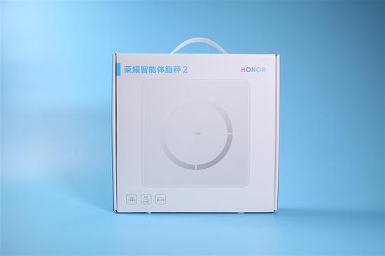 荣耀智能体脂秤2的包装十分简洁。白色纸箱外加手提式设计,轻轻松松就可以拿到家中。