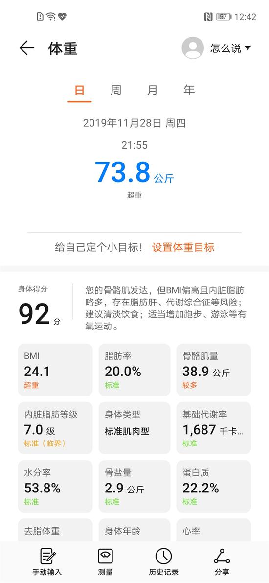 点击完成后,我们就可以正式开始荣耀智能体脂秤2的“智能”体验。