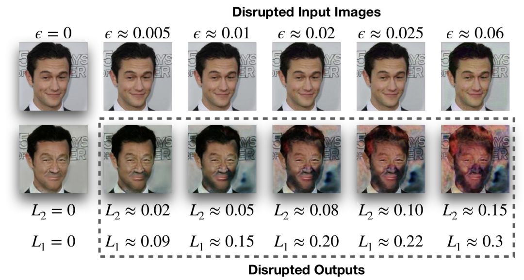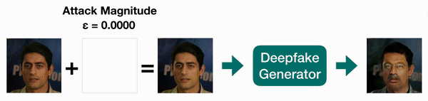 与对抗攻击相同,如果我们给图像加上一些人眼无法识别,但机器又非常敏感的噪声,那么依靠这样的图像,deepfakes 就会被攻击到。