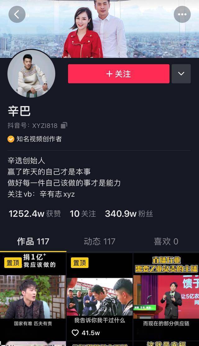 去年10月,辛巴在抖音开设账号,发布短视频,收获了340万粉丝。