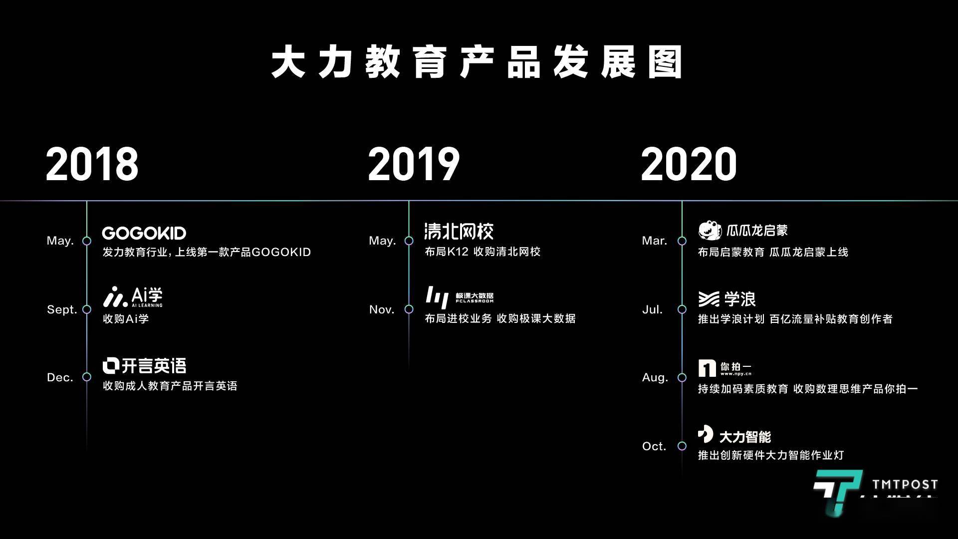 等到2018年,我们开始做一些尝试。又过了一年,公司开始全力投入。我们来看看这张图,这是我们教育业务过去的一些主要探索。