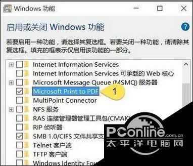 2、找到并重新勾选 Microsoft Print to PDF — 再点击确定重新安装即可;