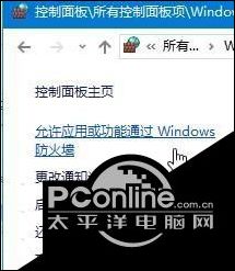 3、在左侧点击“允许应用或功能通过Windwos 防火墙”;