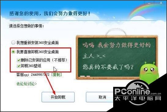 3、一定要点击“我要直接卸载360安全桌面”然后再点击【开始卸载】即可将其卸载了。