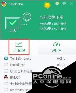 1、点击 360安全卫士 加速球的点击上网管理,打开管理网速界面;
