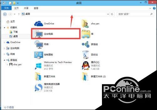 2、看到桌面上面有“这台电脑”,我们可以直接将他拖到桌面就OK了。